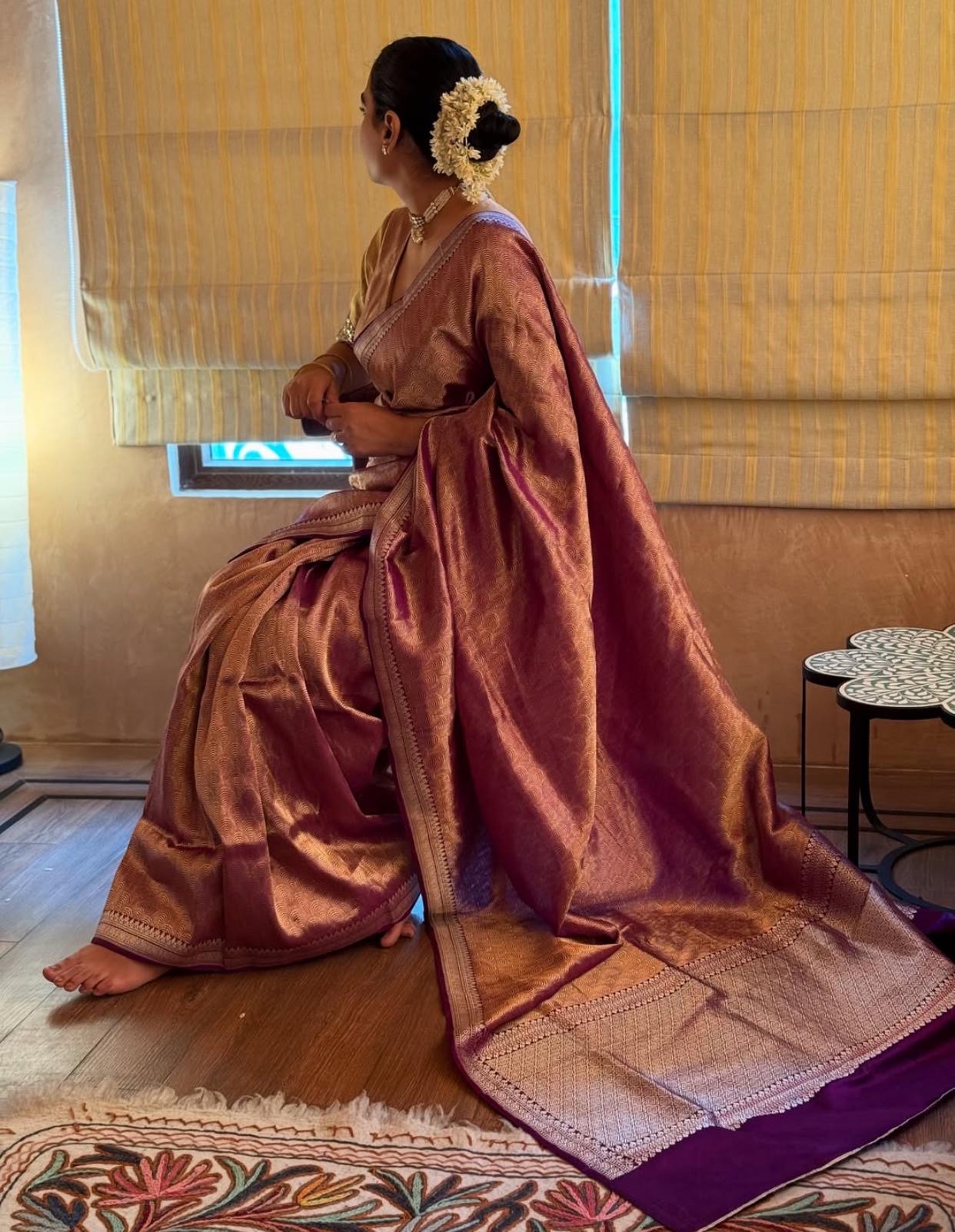 Pure Purple Katan Silk Banarasi Saree with Rich Zari Border