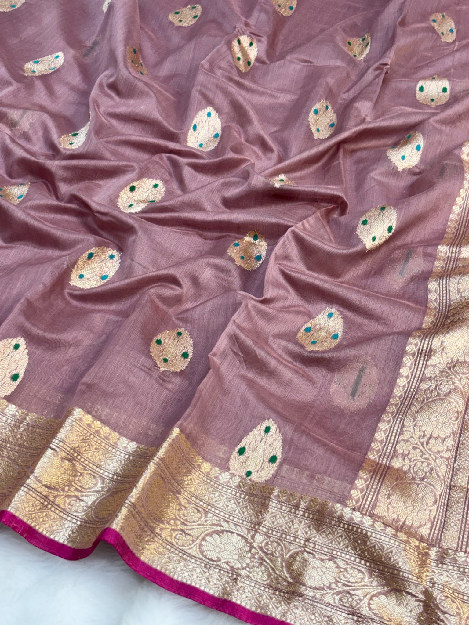 Pink Handwoven Pure Banarasi Ektara Silk Saree – Kadwa Iktara Weave, Pure Mulberry Silk
