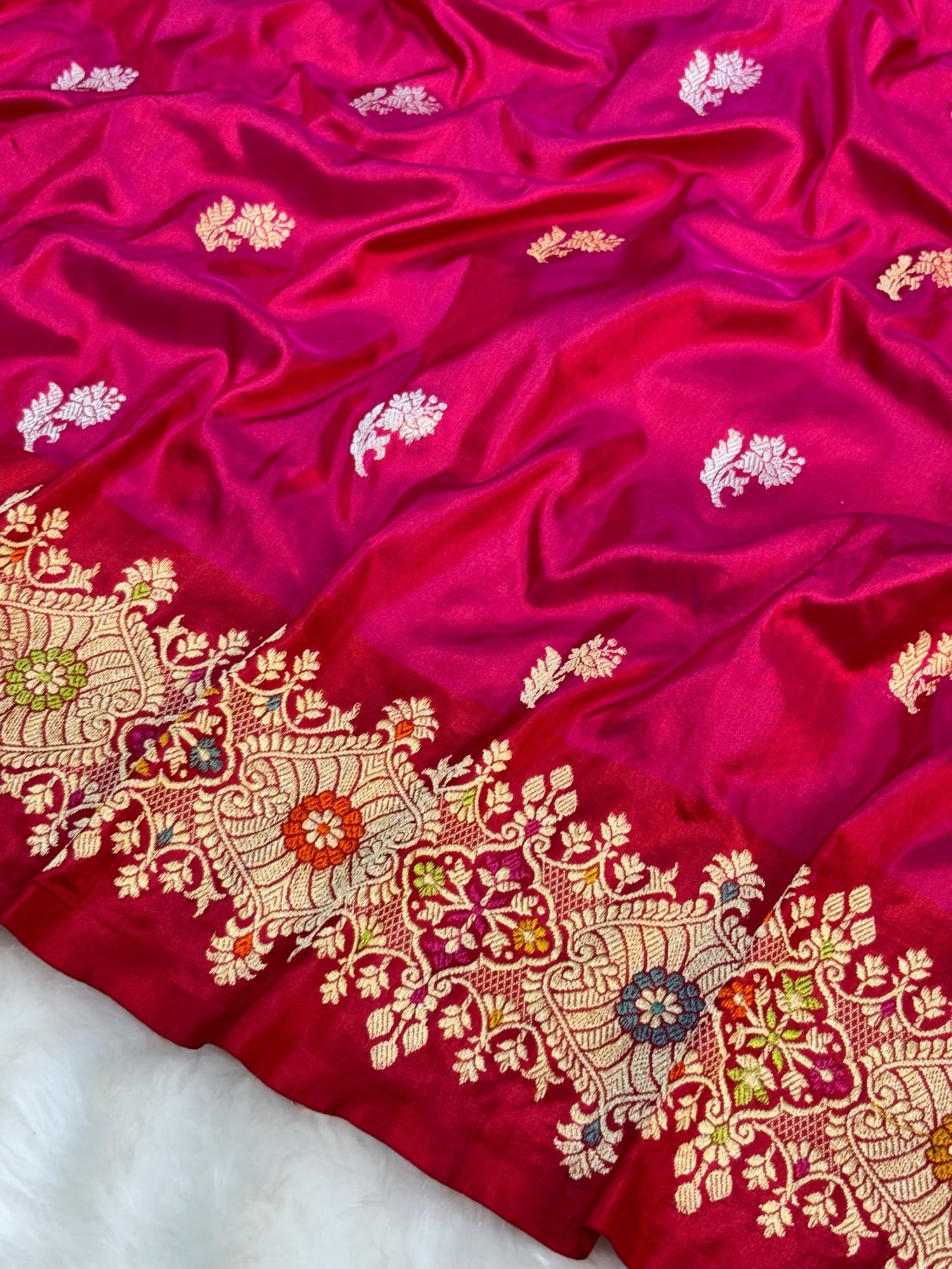 Pure Katan Silk Handwoven Banarasi Saree – Hot Pink Base with Rich Zari Border
