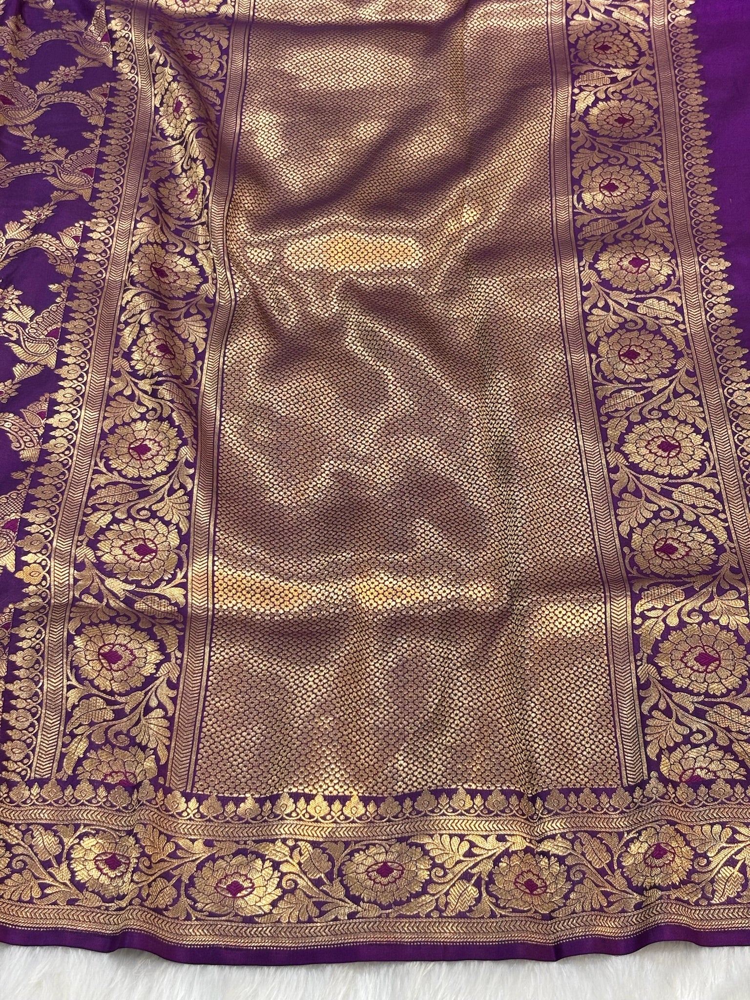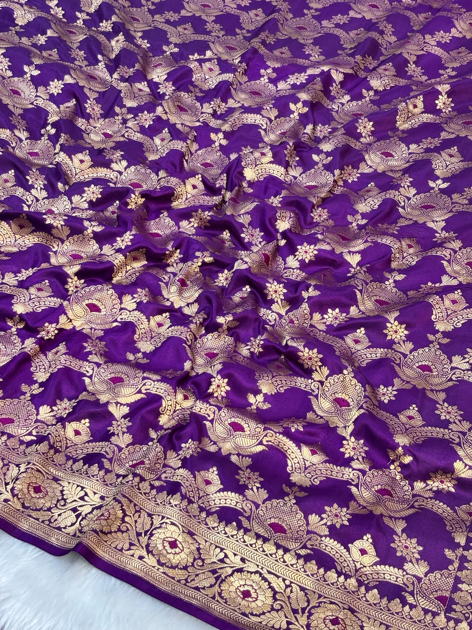 Pure Purple Katan Silk Banarasi Saree with Rich Zari Border